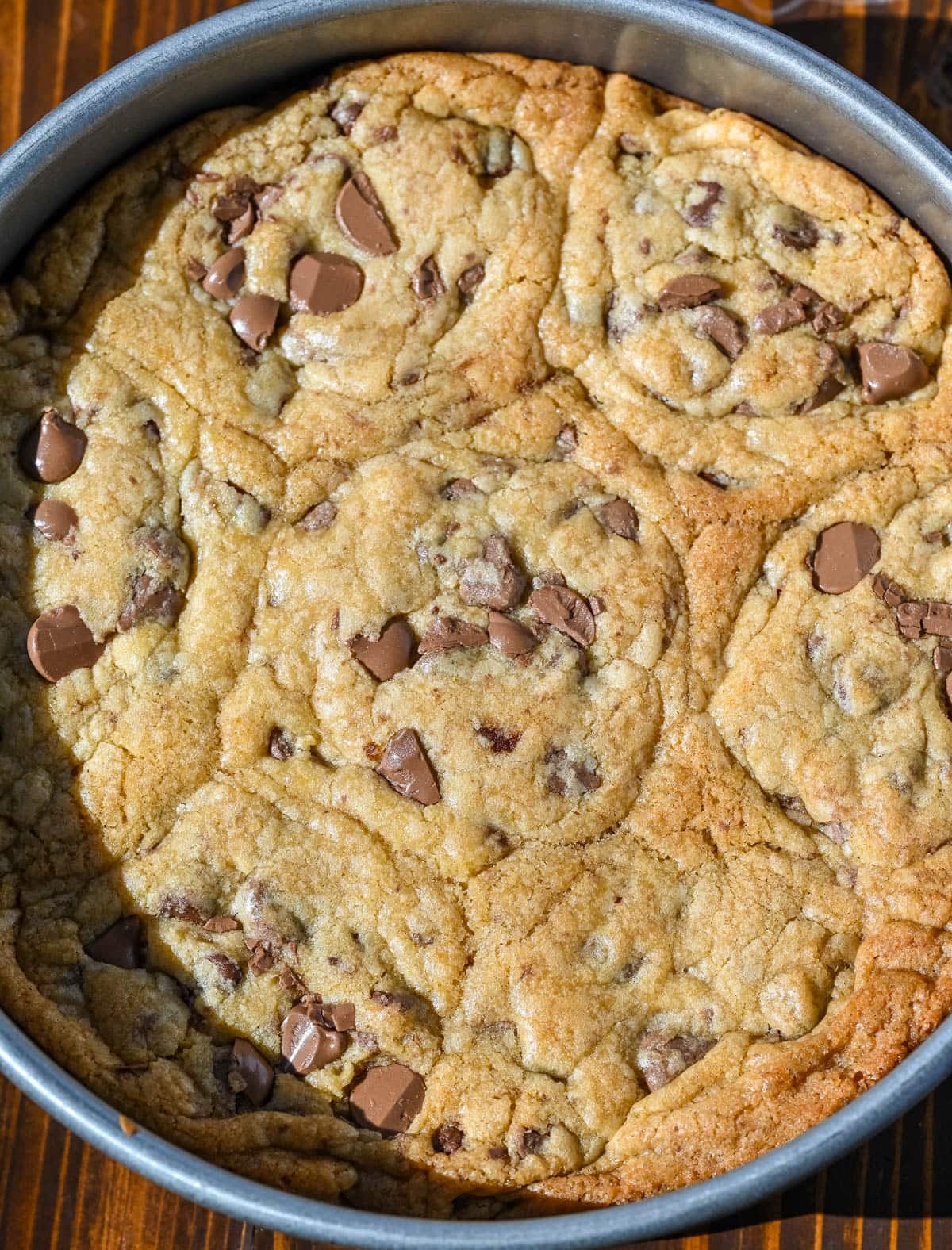 Scoopable cookies are a viral TikTok-style cookie trend where the cookie dough is baked in a pan just until set, leaving the center intentionally soft, gooey, and slightly underbaked. The secret to scoopable cookies is slightly underbaking the center while keeping enough structure around the edges. A higher ratio of butter and brown sugar keeps the interior soft and molten, while baking in a pan traps heat and creates that signature gooey texture.
